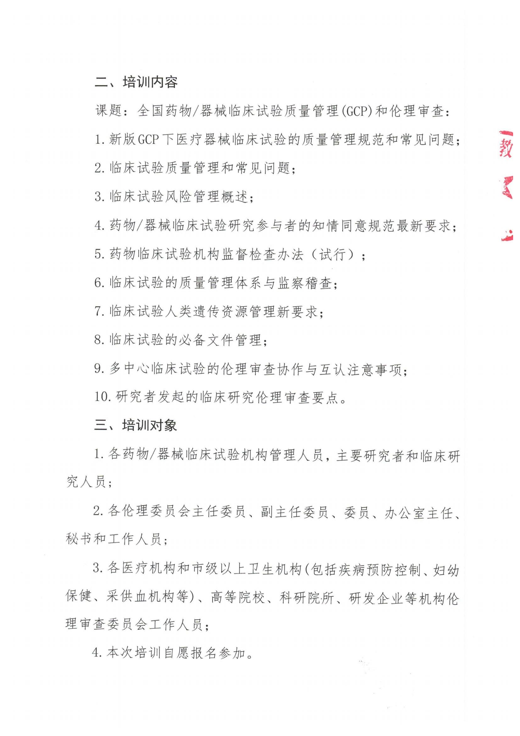 2024年全国药物/器械临床试验质量管理(GCP)和伦理审查培训班