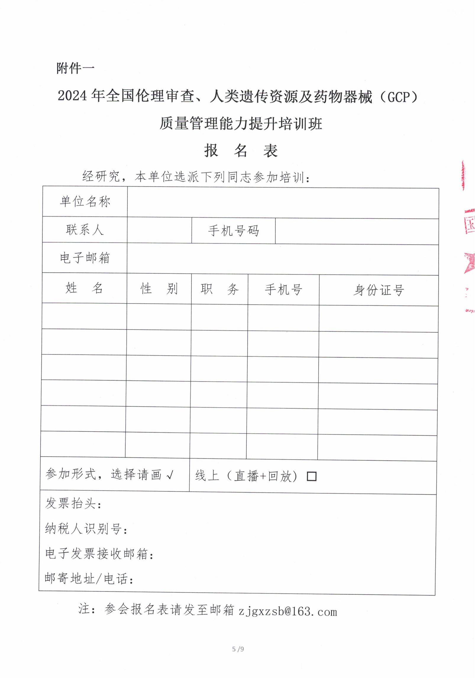 2024年全国伦理审查、人类遗传资源及药物/器械(GCP) 质量管理能力提升培训班